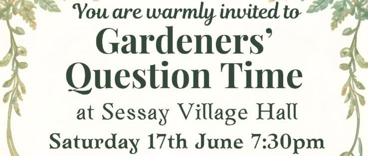 You are warmly invited to a Gardeners’ Question Time with Sarah Hopps and Mike I’Anson at Sesay Village Hall on Saturday 13th June at 7.30 pm. This is your opportunity to ask all those gardening questions you’ve been storing up!