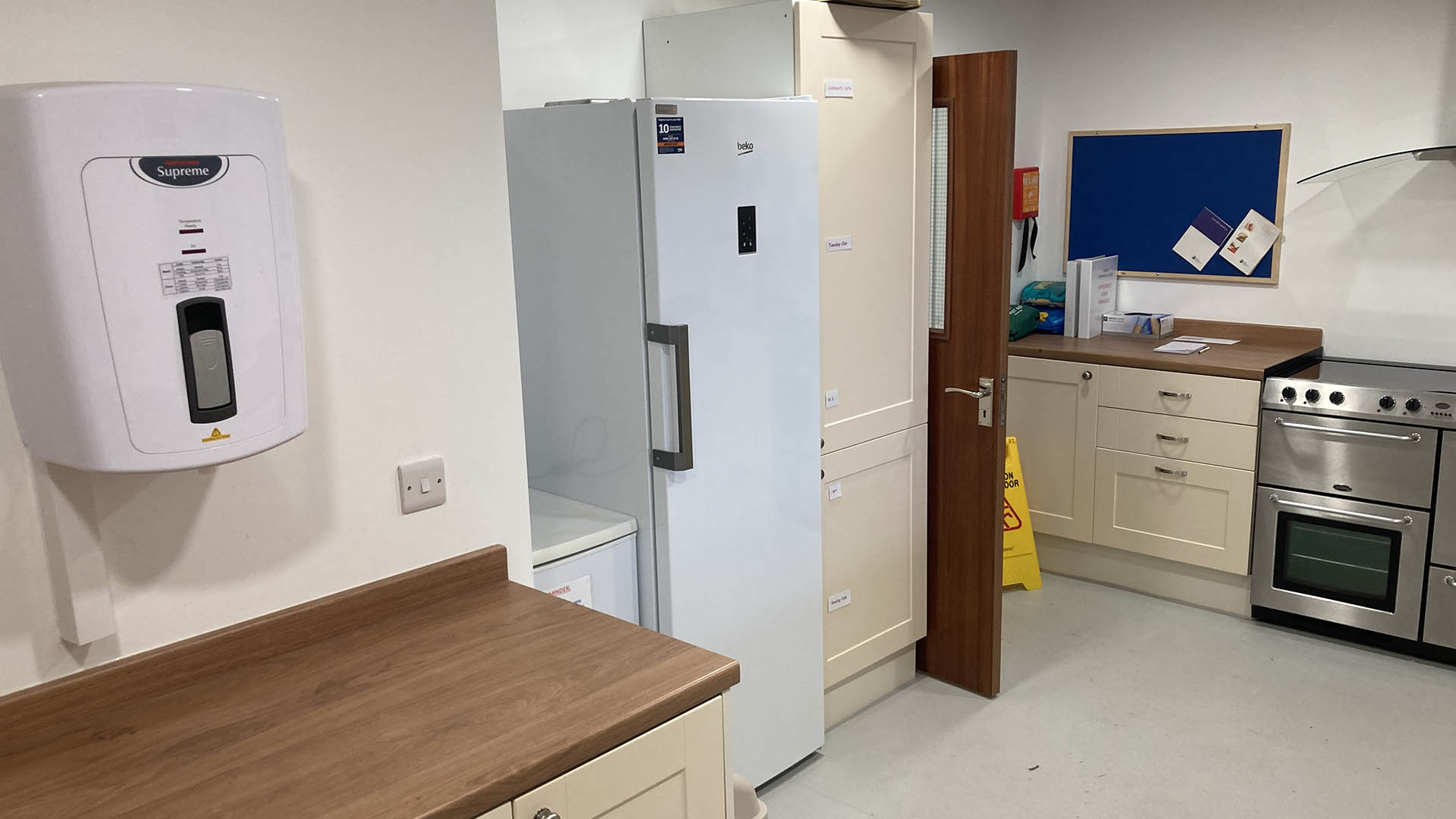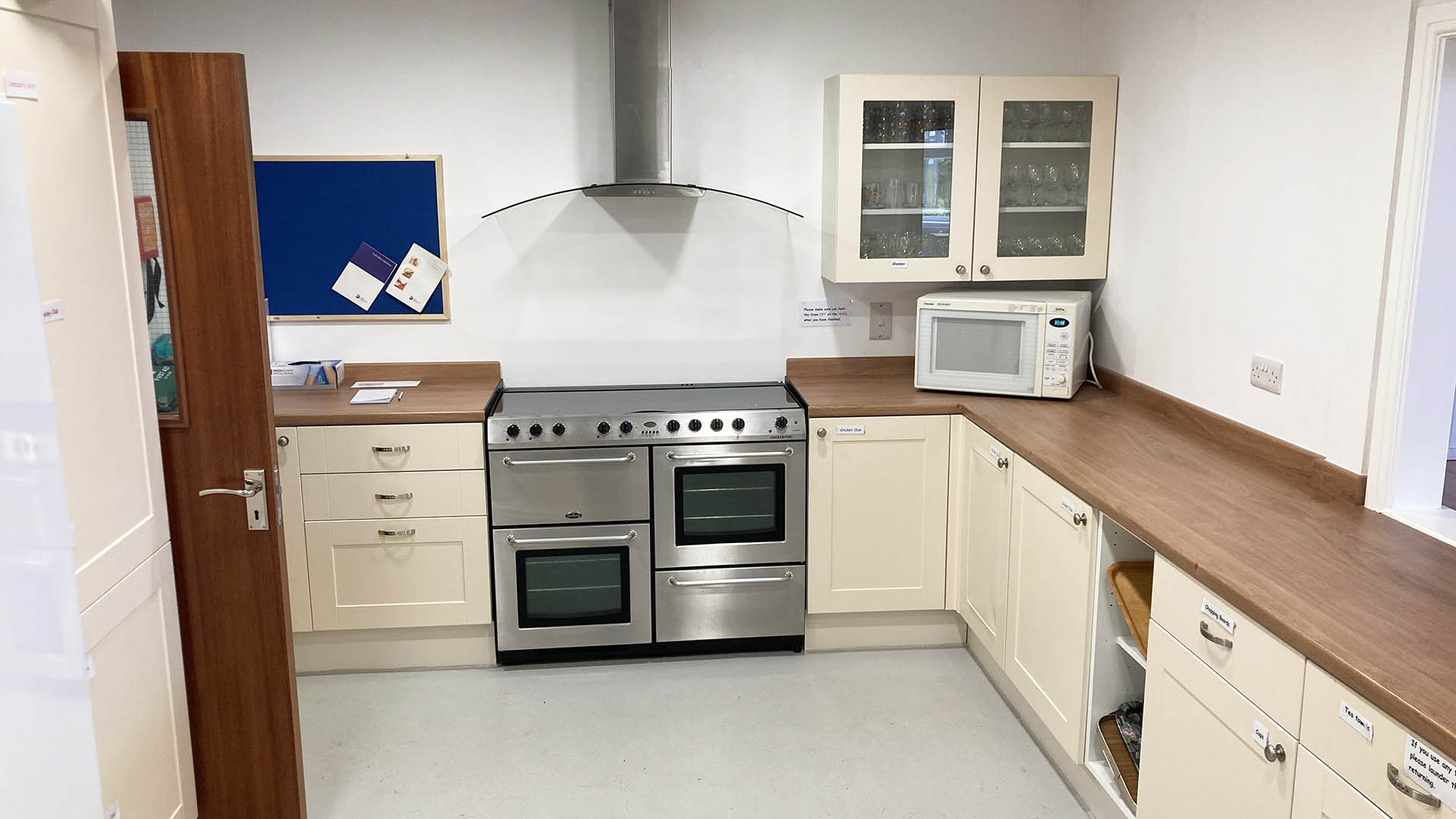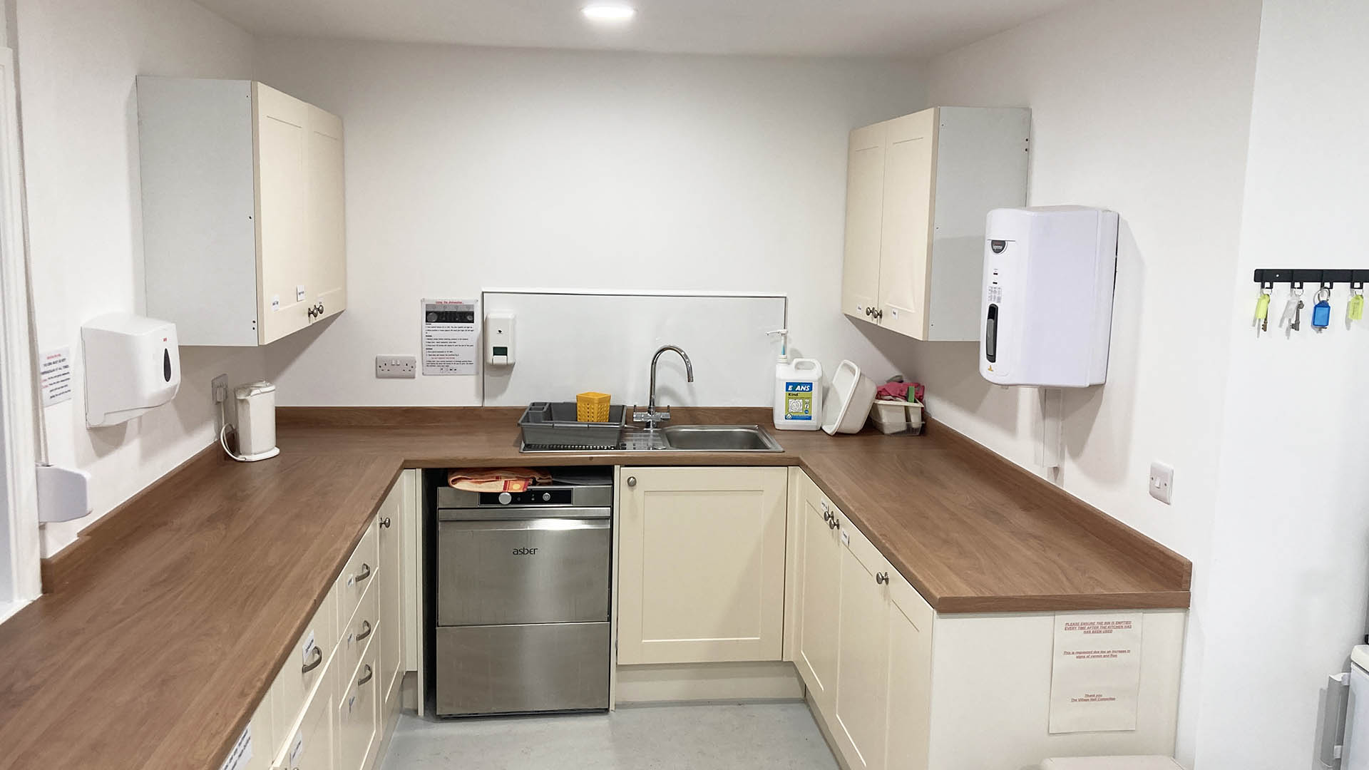 We have a fully equipped kitchen with 5 burner stove, 2 large ovens, fridges, crockery, dishwasher, and continuous hot water boiler. It also has a serving hatch to the main hall.
