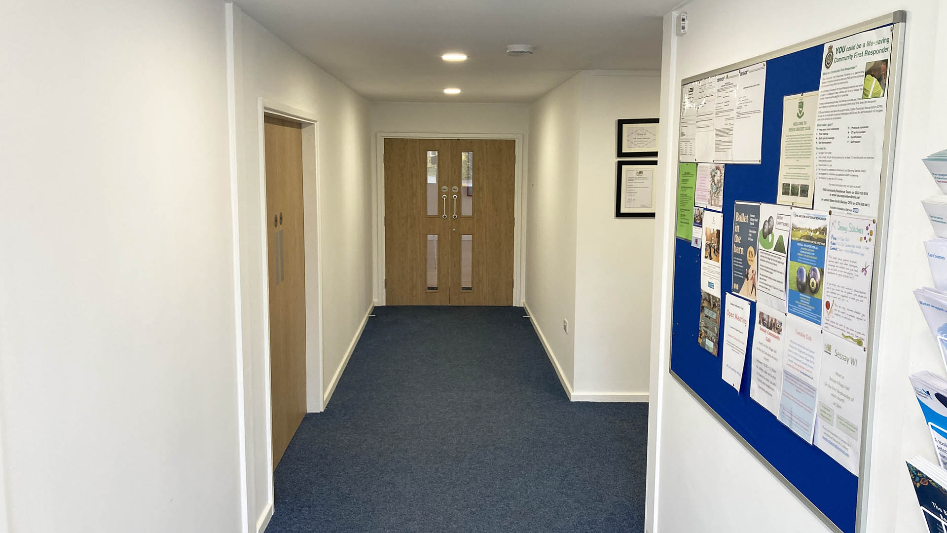 Spacious accessible entrance hall with ramp, double doors to the main hall and meeting room. There are separate toilets and an accessible toilet including changing facilities.